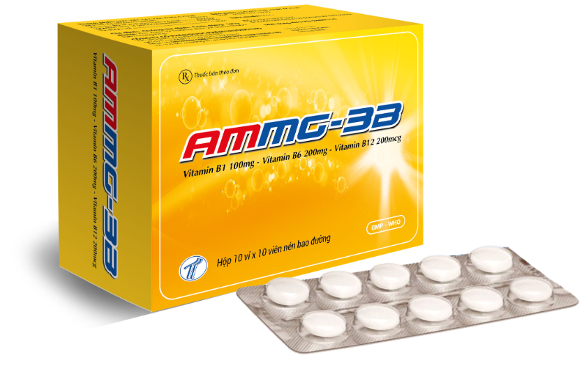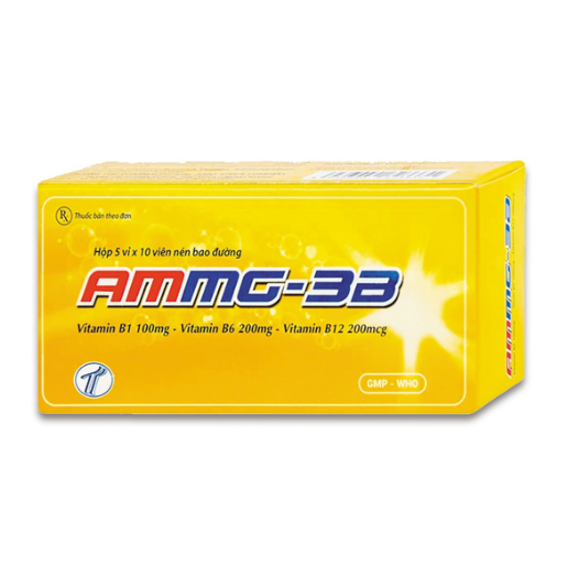 AMMG 3B (Vitamin B1 100mg, Vitamin B6 200mg, Vitamin B12 200mcgVitamin B1 100mg, Vitamin B6 200mg, Vitamin B12 200mcg) Hộp 5 vỉ x 10 viên