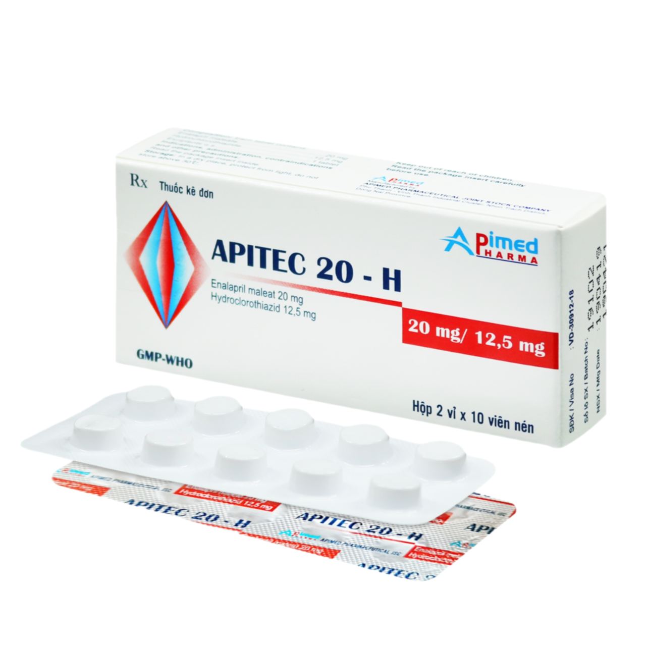 APITEC 20-H (Enalapril 20mg, Hydroclothiazid 12,5mg) Hộp 2 vỉ x 10 viên