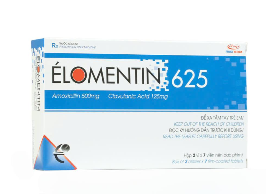 ÉLOMENTIN 625 (Amoxicillin 500mg + Acid clavulanic 125mg) Hộp 2 vỉ x 7 viên