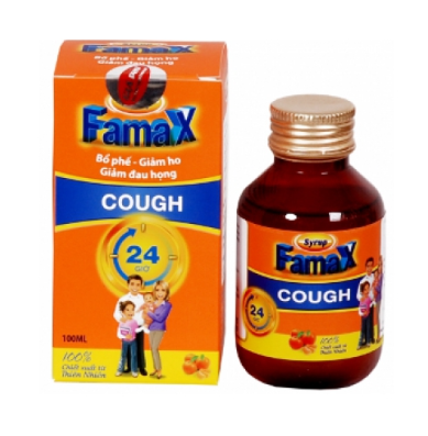 FAMAX SYRUP (Cao lá thường xuân 1000mg, dịch ép quả tắc 100mg, mật ong rừng 50mg, tinh dầu tràm 5mg, tinh dầu bạc hà 10mg, tinh dầu gừng 5mg) Lọ 100ml