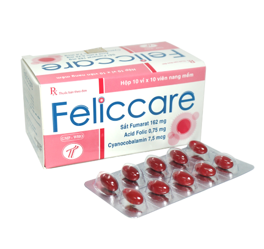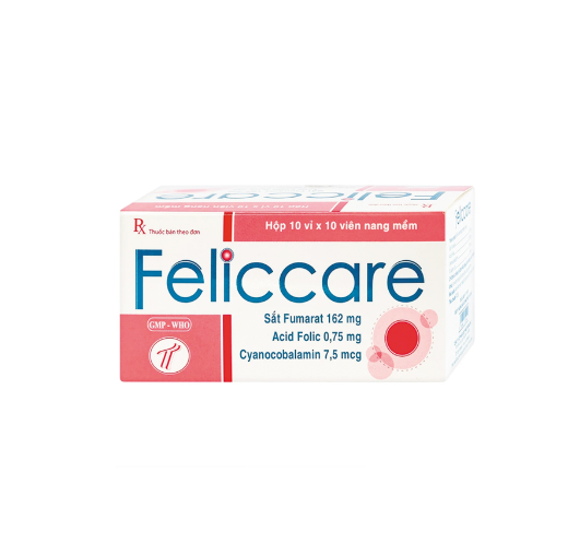 FELICCARE (Sắt Fumarat 162mg, Acid Folic 0.75mg, B12 7,5 mcg) Hộp 10 vỉ x 10 viên
