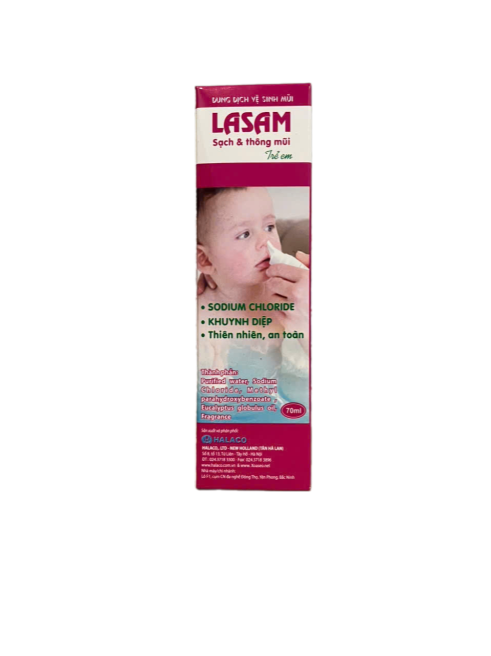 LASAM-TRẺ EM (Tinh dầu khuynh diệp, tinh dầu long não, Natri Chloride, nước tinh khiết, Nipagin, hương liệu) Chai 70ml