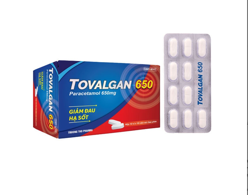 TOVALGAN 650 (Paracetamol 650mg) Hộp 10 vỉ x 10 viên