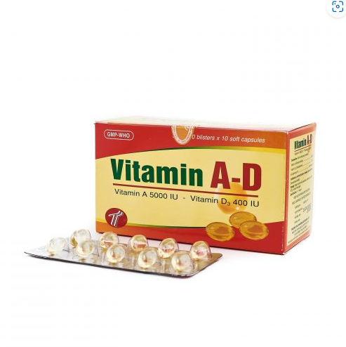 VITAMIN A-D (Vitamin A: 5000 IU, D3: 400IU) Hộp 10 vỉ x 10 viên